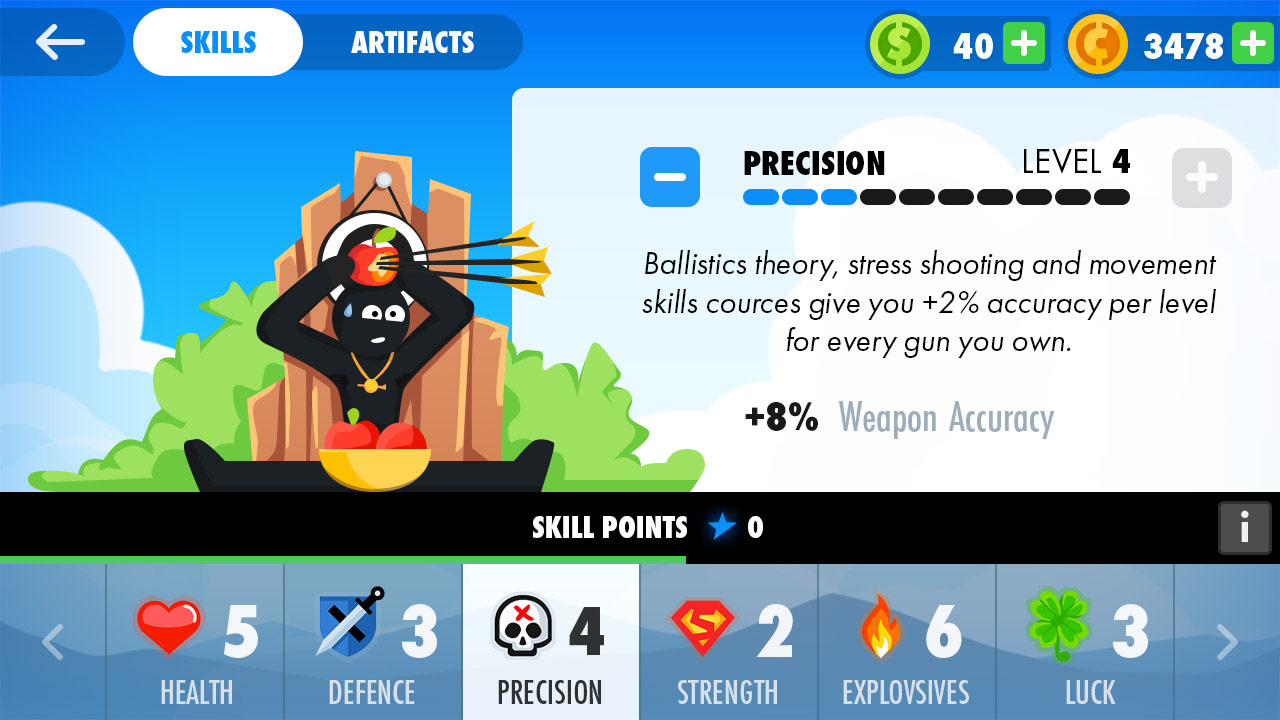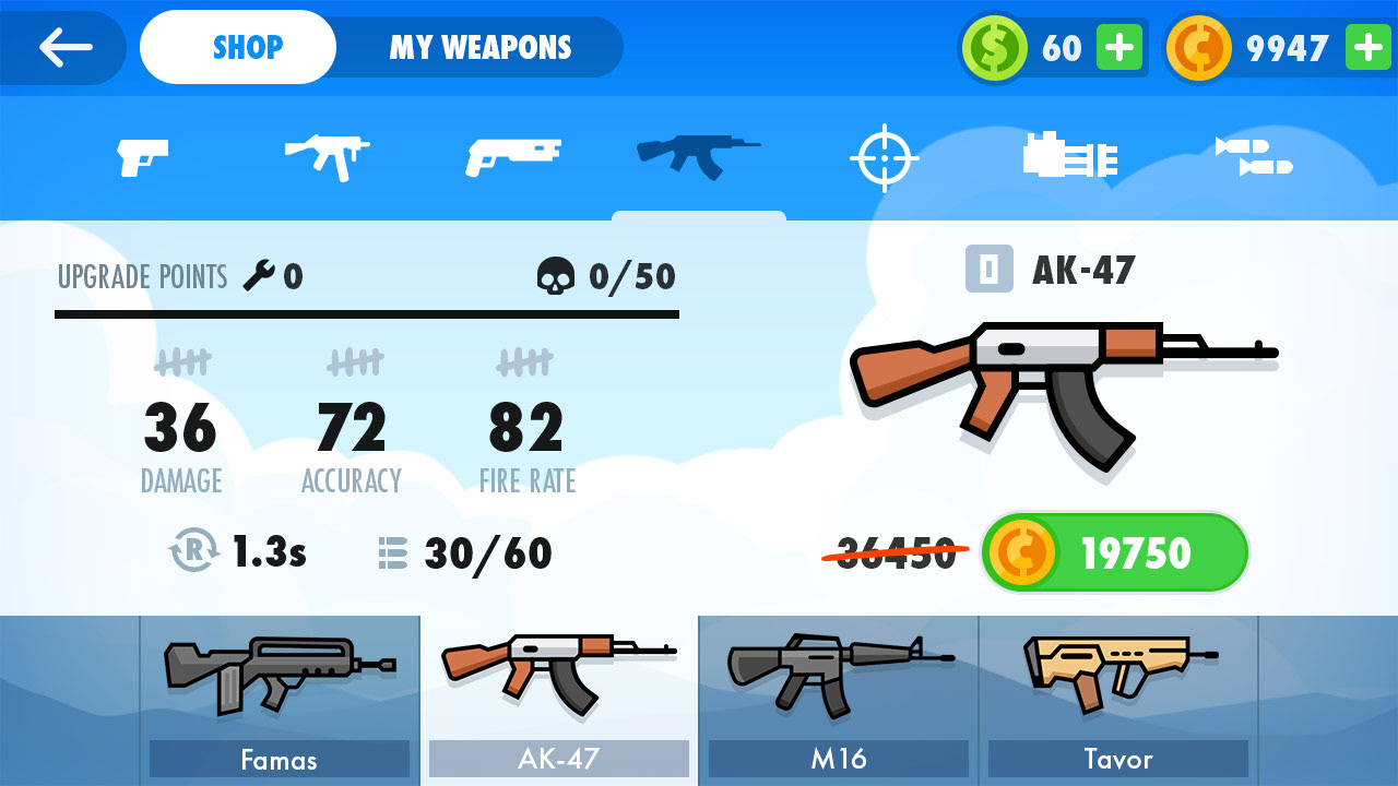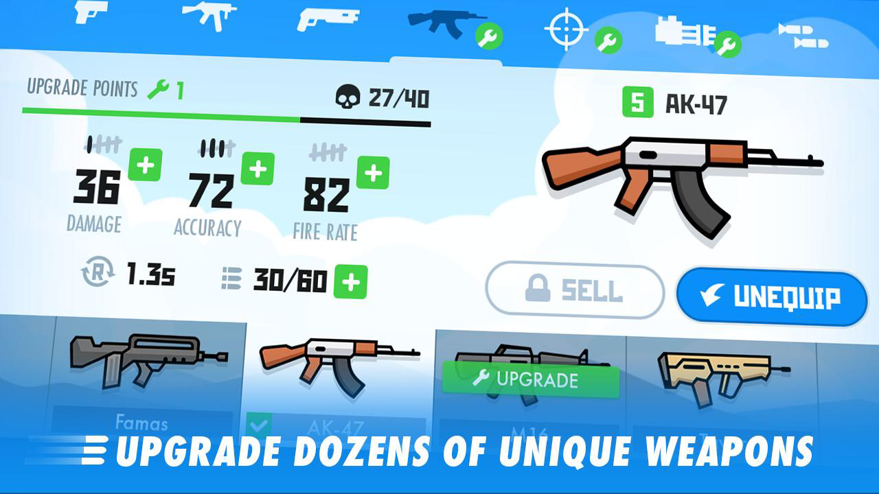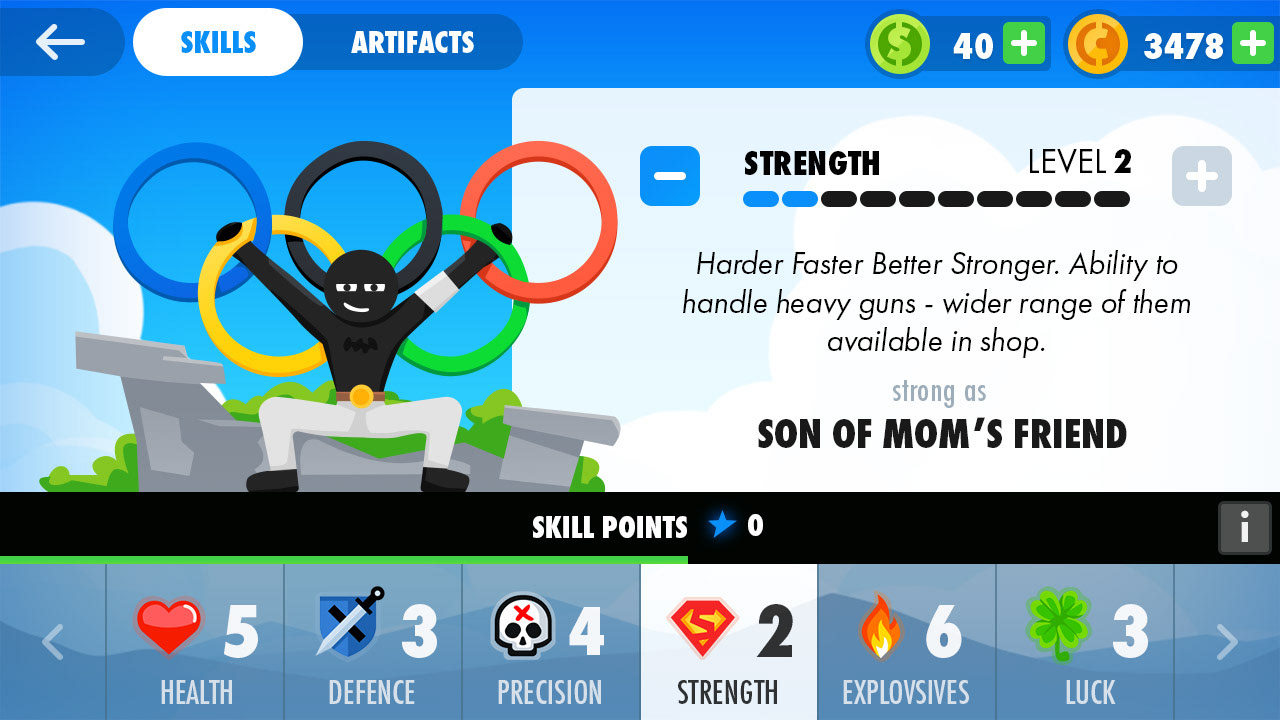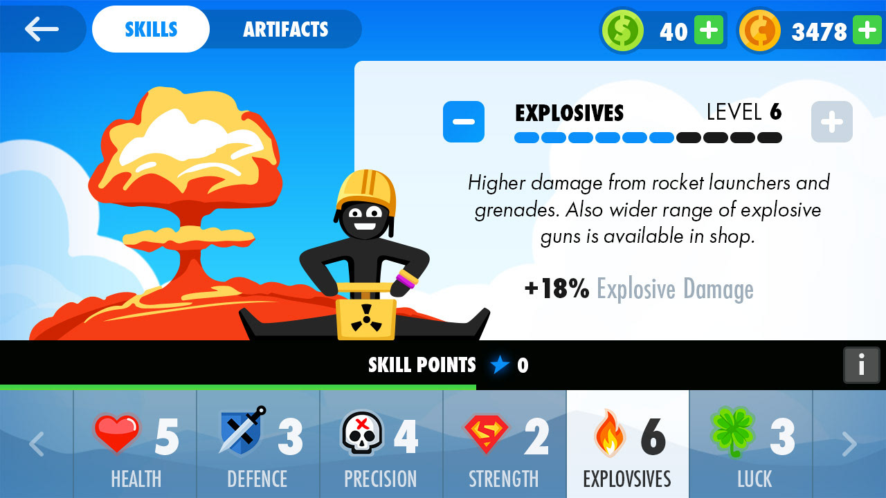 Stickman Combats is a mobile multiplayer shooter game in stickman setting. One of my main tasks on that project was design of user interface. Game has a complex interface with different game modes, clothes and weapons market, skills and armors upgrade.